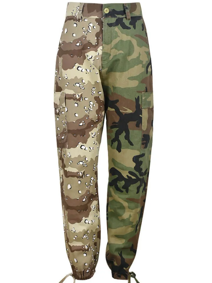 Features: No stretchy, Camouflage print, patchwork, drawstring, button, long pants.