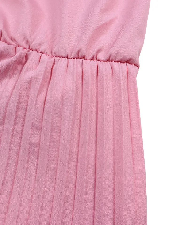 - Bottom: High-waist pleated wide-leg pants