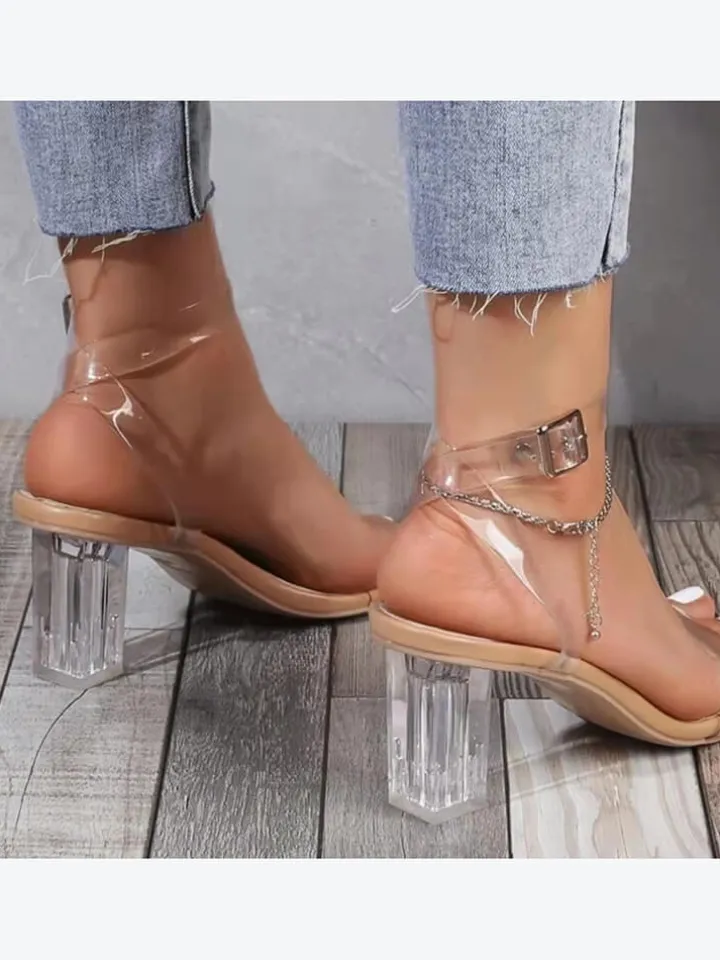 Chunky Block Transparent Strappy Open Toe Heel