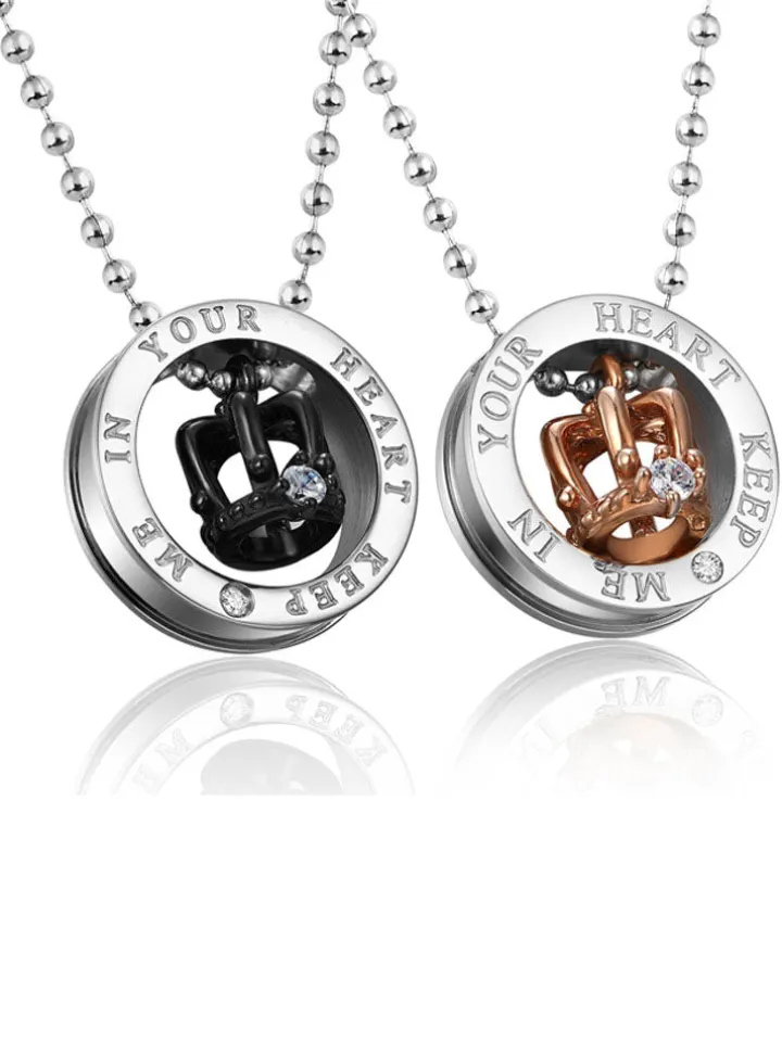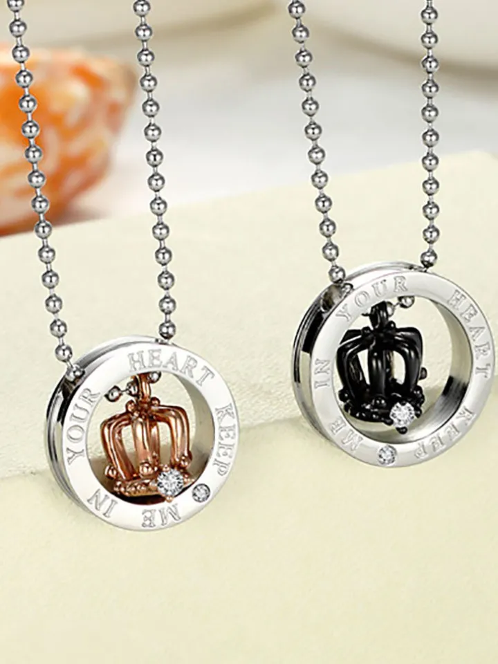 Crown Pendant Rhinestone Couple Necklaces