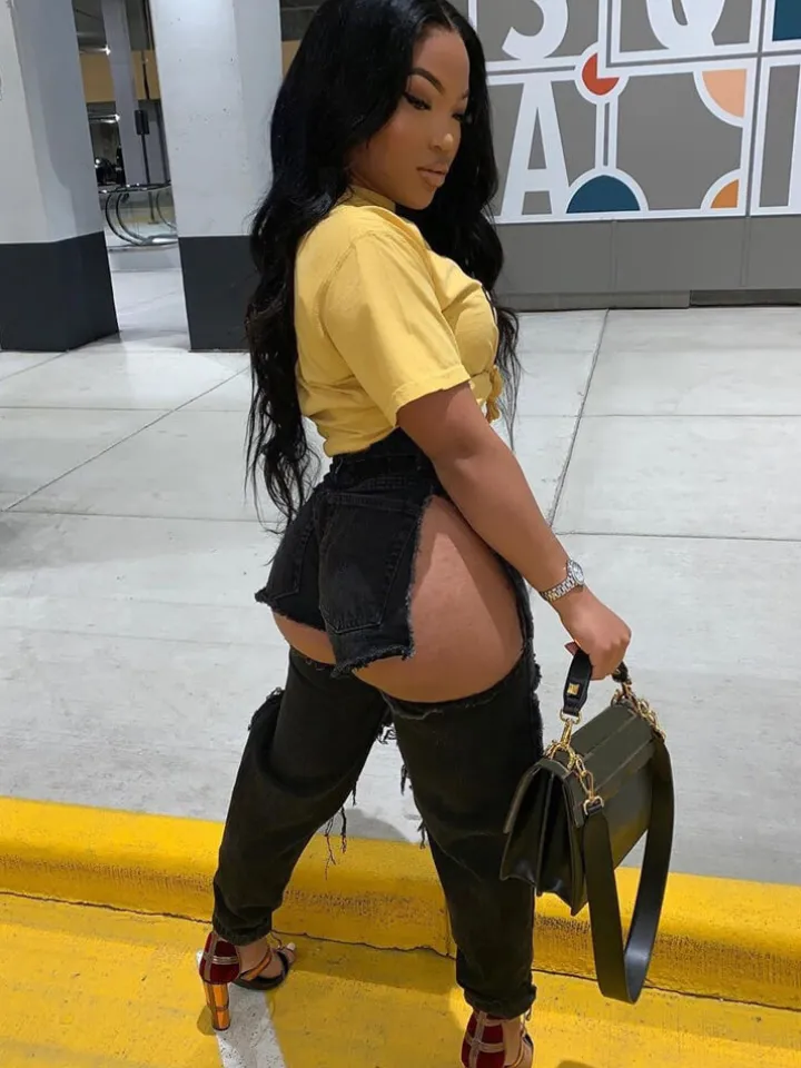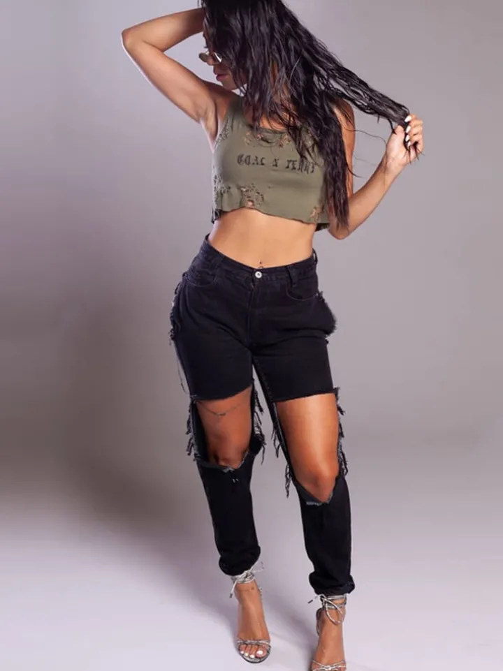 Feature: Denim, Cut out, ripped, pockets, high waist, button, zip up, bodycon pants.