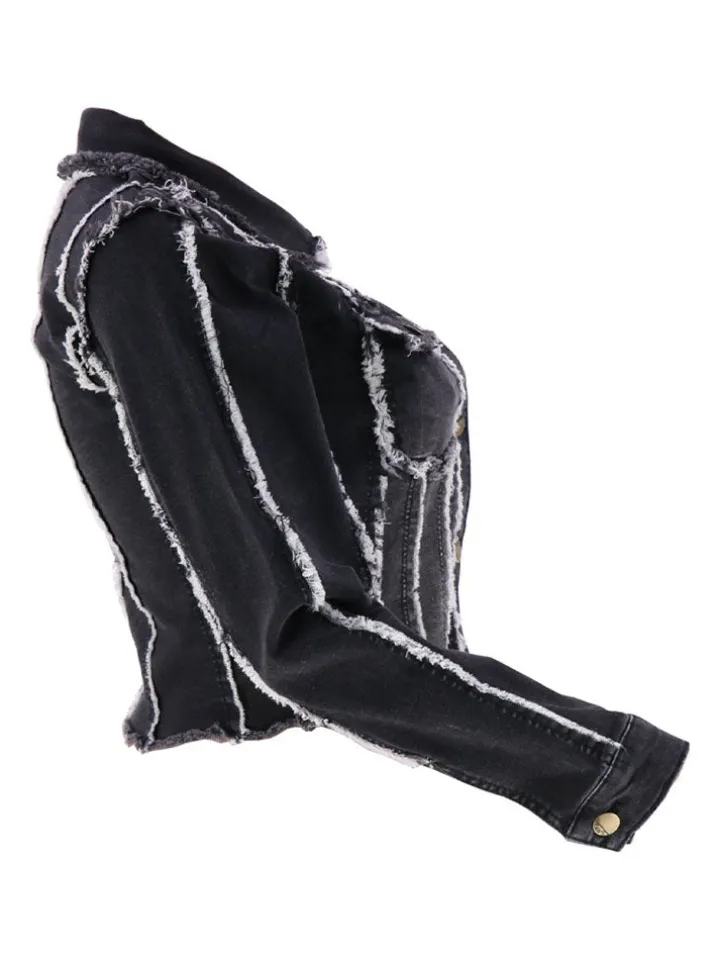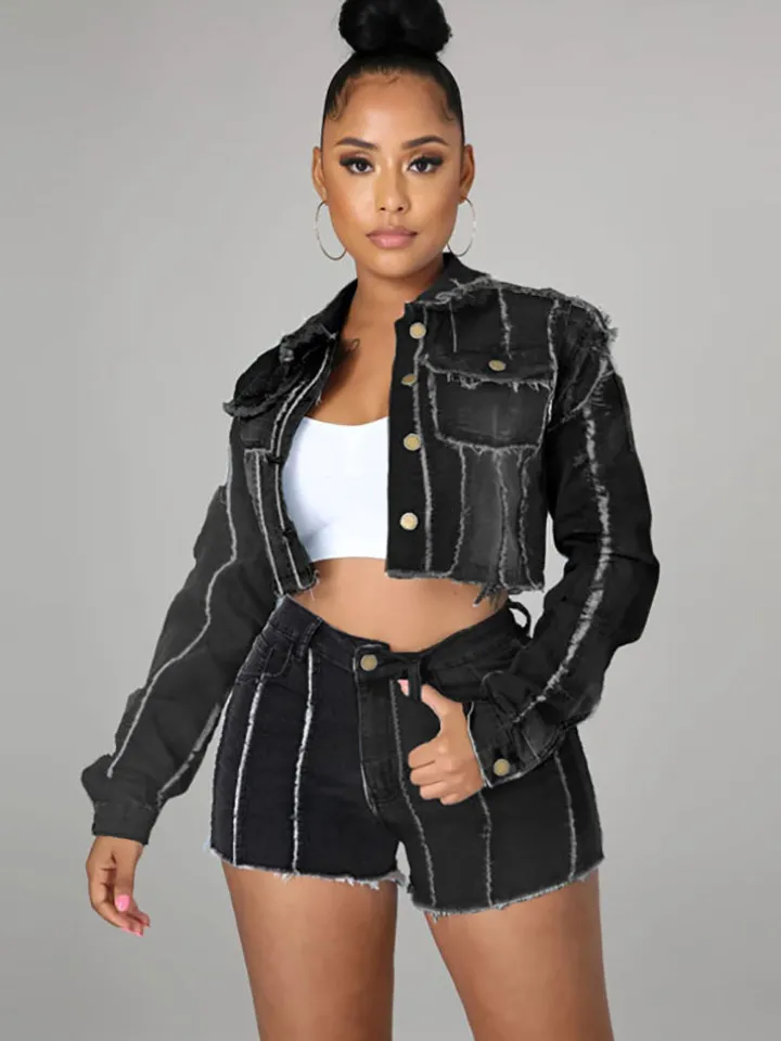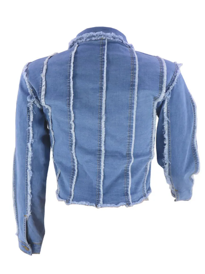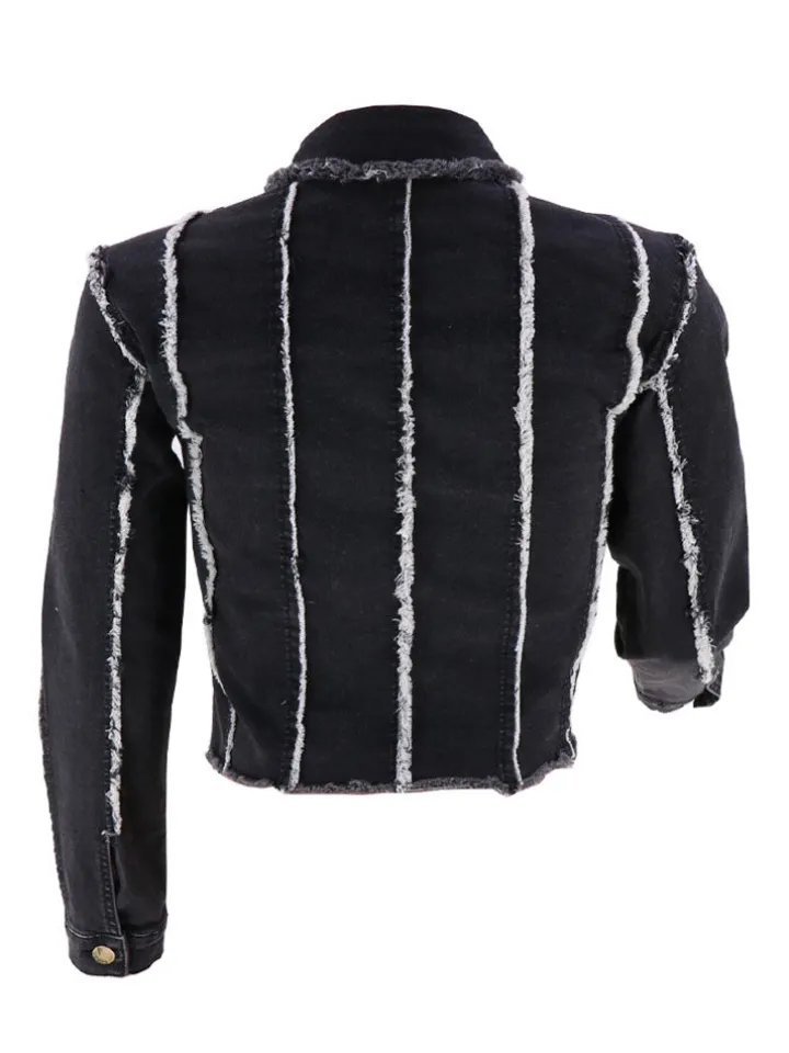 Features: Denim, long sleeves, button, stretchy, ripped, striped, short jackets.