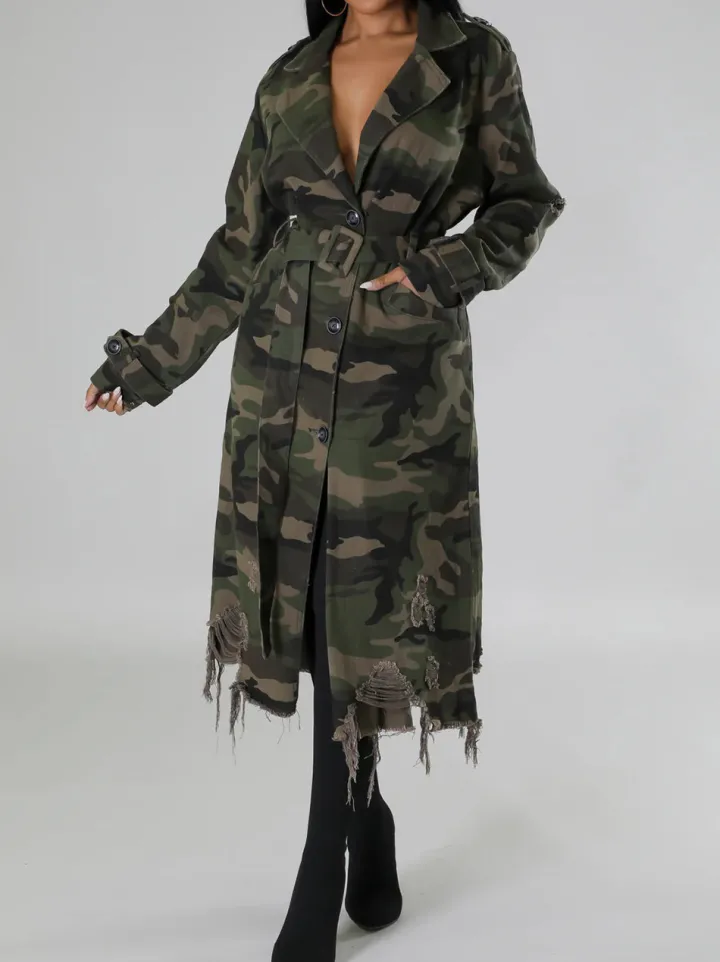 Be the first to review “Distressed Camouflage Long Trench Coat” Cancel reply