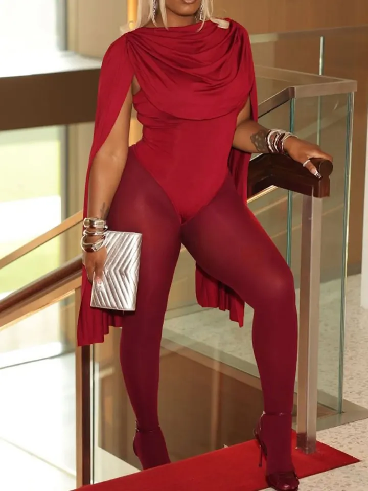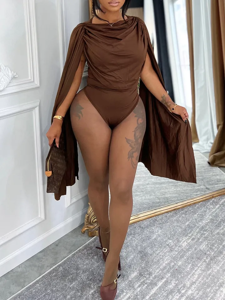 Be the first to review “Draped Round Neck Cape Sleeve Romper” Cancel reply