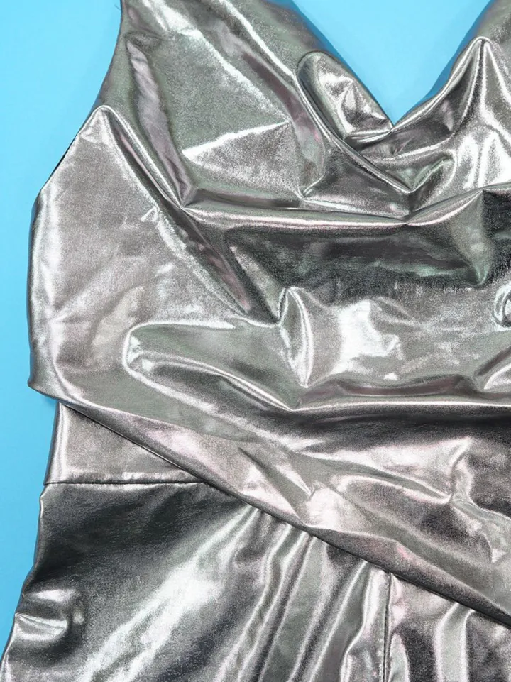 Glitter Halter Cowl Neck Backless Jumpsuit
