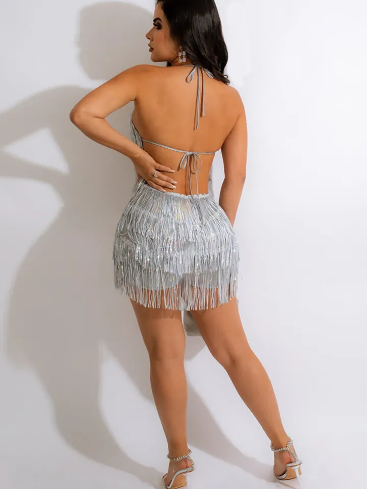 Halter Neck Sleeveless Sequin Tassel Romper