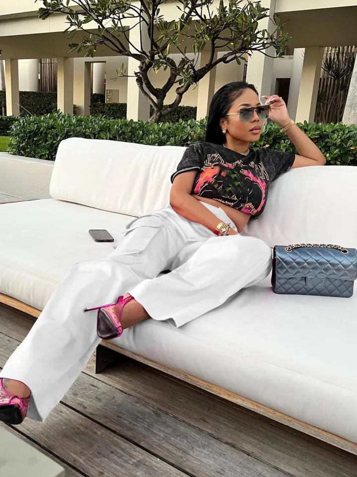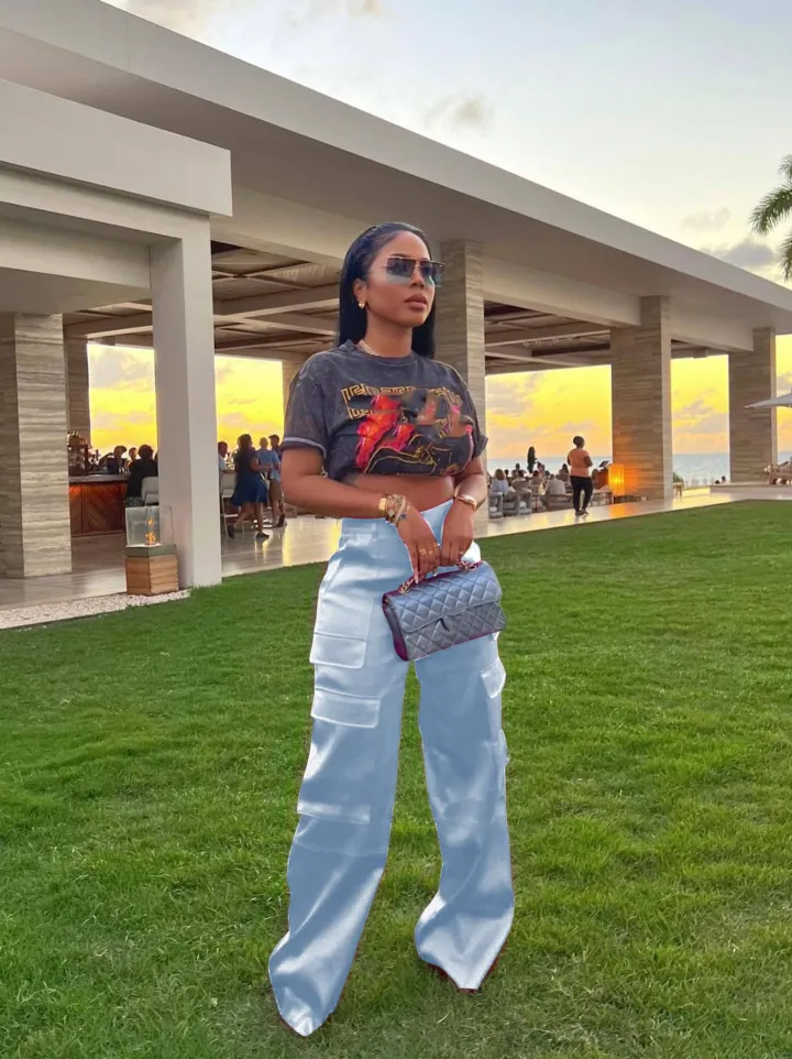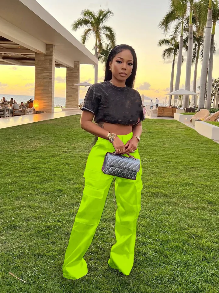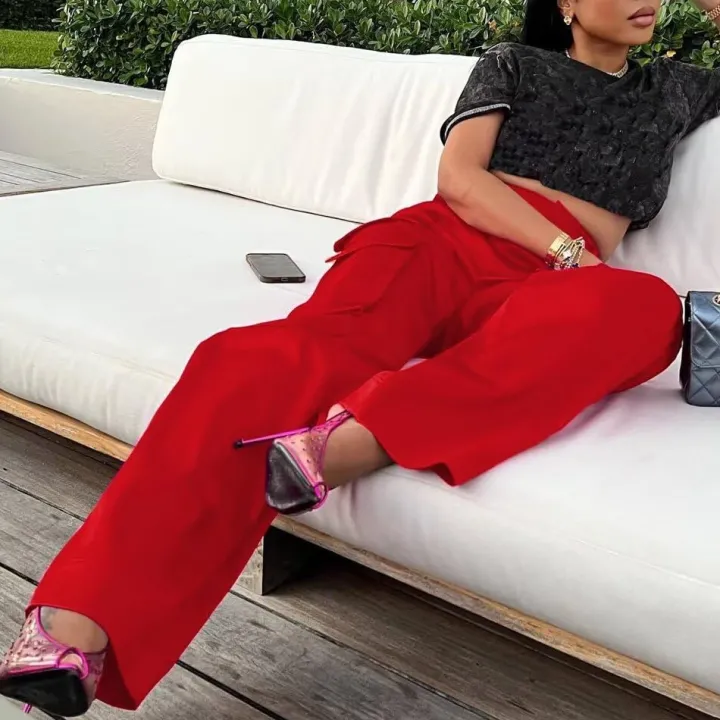 Design: Cargo pants, wide leg, solid color, high waist, long pants, has pocket.