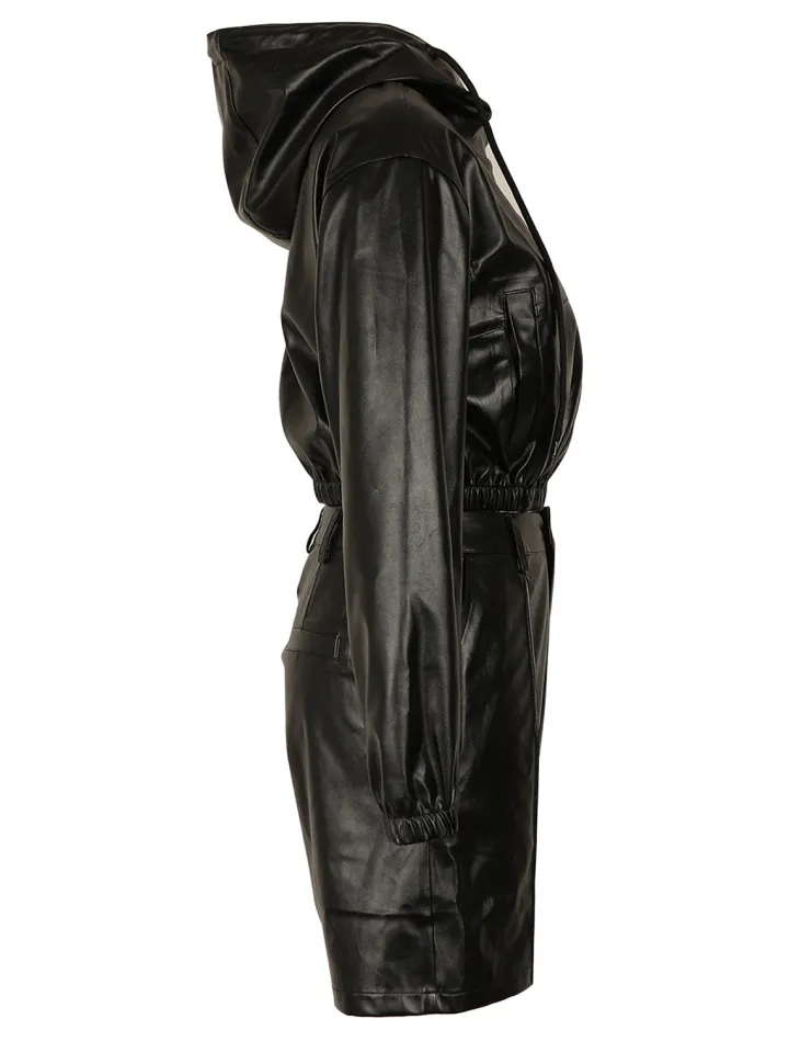 Hooded PU Leather Jacket Shorts Set