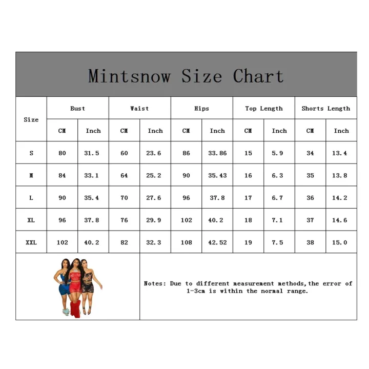 Features: See-through, two-piece short outfit sets, solid color, sleeveless, lace, tube tops, bodycon tops and shorts, sheer mesh, elastic waist short tight pants. Makes you shiny and chic, shows your sexy curve, and makes you extremely beautiful.