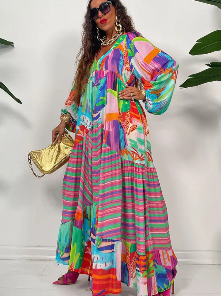 Feature: No stretchy, floral print, long sleeve, lantern sleeve, pleated, ruffle, v-neck, bodycon, maxi dresses.