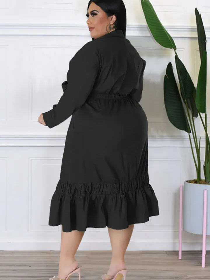 Feature: Long sleeve, v-neck, solid color, ruffle, lace up, bodycon, midi dress. Unique style makes you fashionable.
