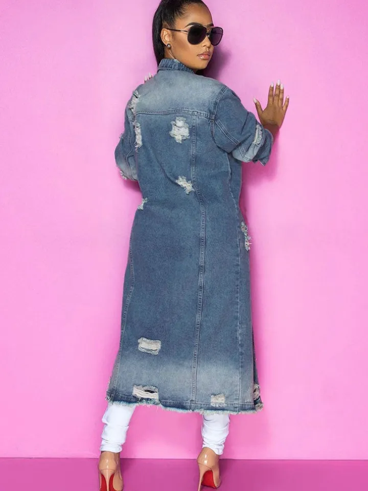 Be the first to review “Long Sleeve Ripped Long Denim Jacket” Cancel reply