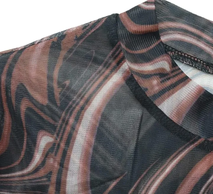 This bodycon mini dress features a crew neck and leopard print, made of polyester fabric that is both sheer and stretchy. The sheer mesh fabric creates a sexy, see-through look, perfect for a night out or special occasion. Whether it’s for a party, date, or daily wear, this dress is versatile and flattering. With a mock neck and ruched details, it adds a touch of unique style to your wardrobe.