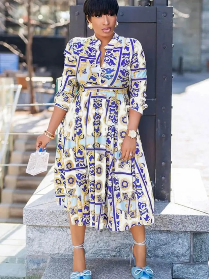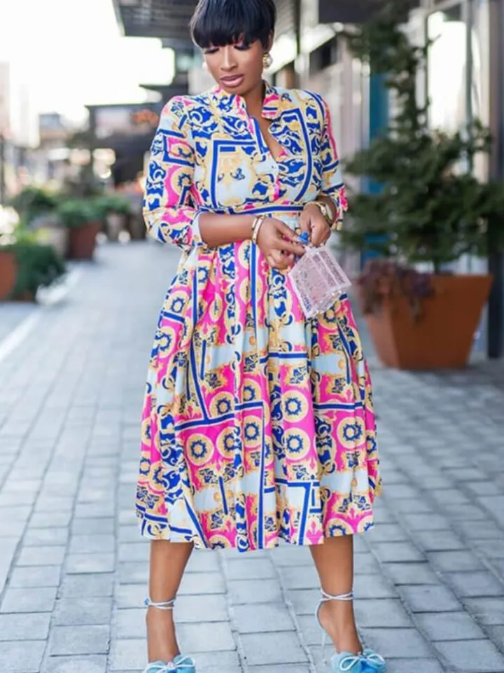 Be the first to review “Long Sleeve V Neck Floral Print Midi Dress” Cancel reply