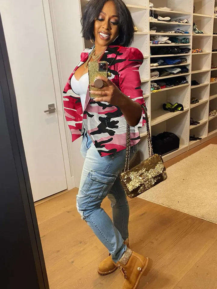 Features: Long sleeves, camouflage print, button, short jacket.