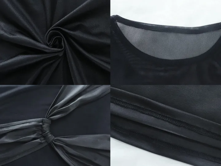 Features: Mesh, long sleeves, patchwork, solid color, bodycon maxi dress.