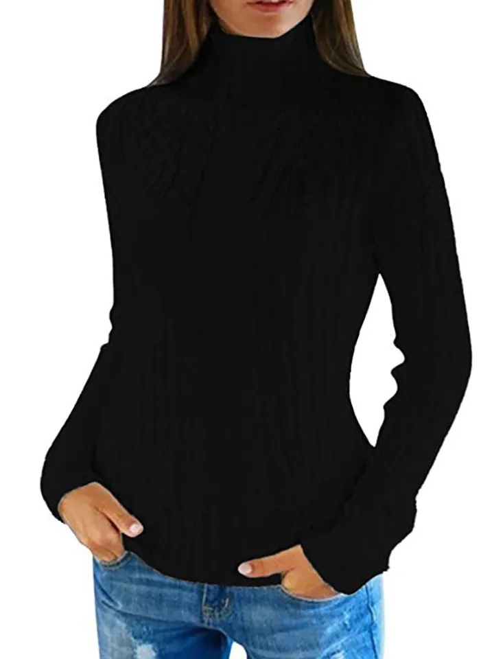 Features: Long sleeves, turtleneck, knit, solid color, ribbed, bodycon sweaters.