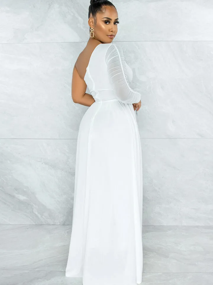 Mesh Patchwork One Shoulder Long Sleeve Jumpsuit