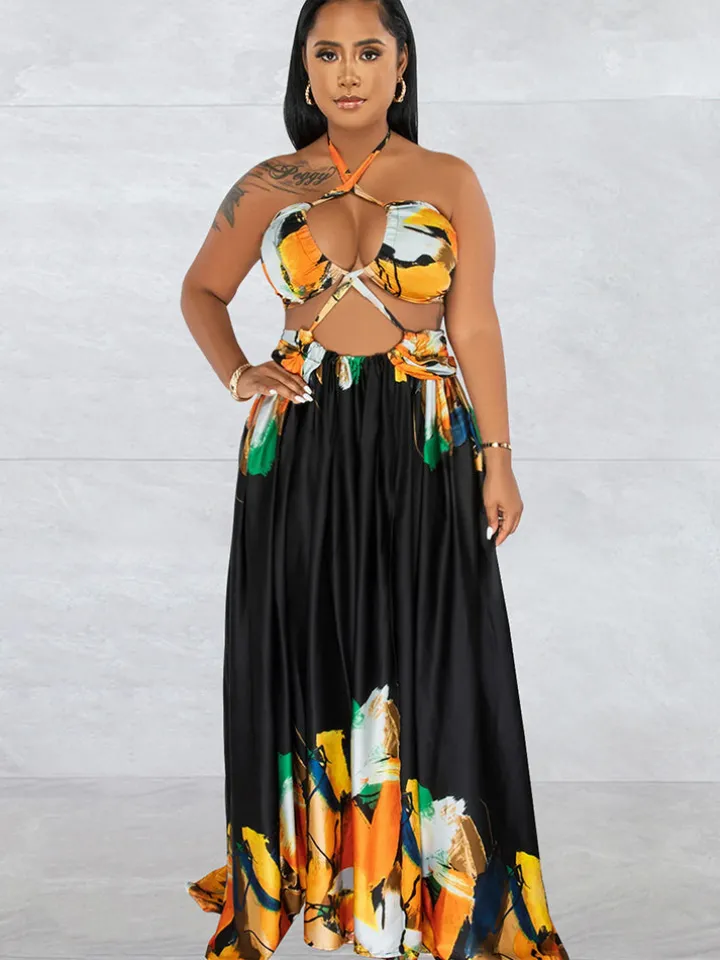 Feature: Off-shoulder, floral print, sleeveless, backless, color block, halter neck, split, crop, bodycon, maxi dresses.