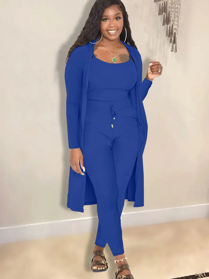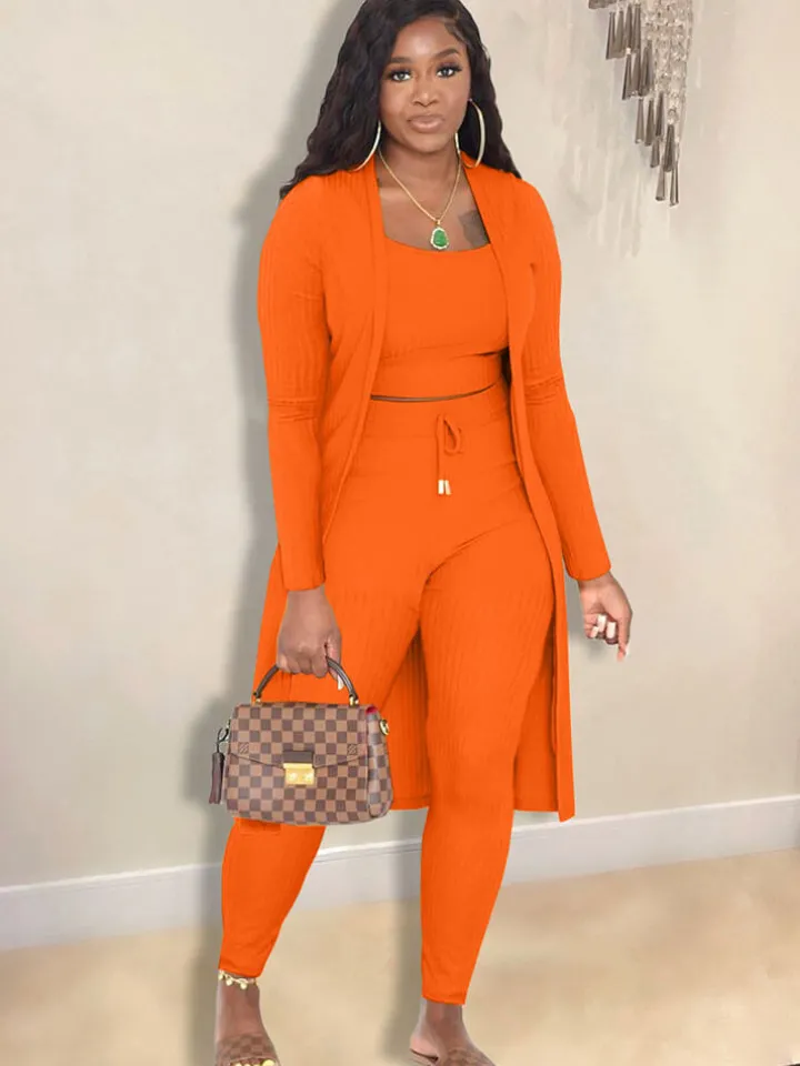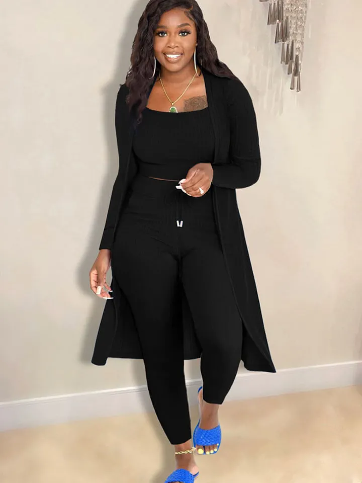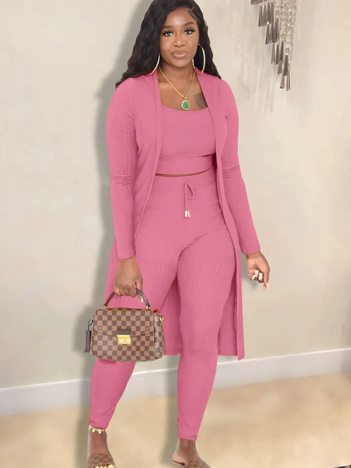 Open Front Cardigan Long Pants Three Piece Outfits