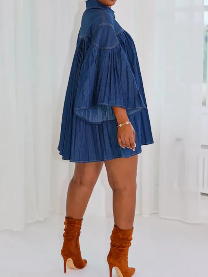 Be the first to review “Oversized Denim Pleated A-Line Shirt Dress” Cancel reply