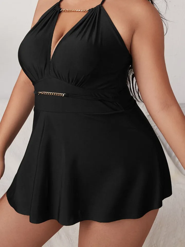 Plus Size Halter Chian Backless Swimsuit