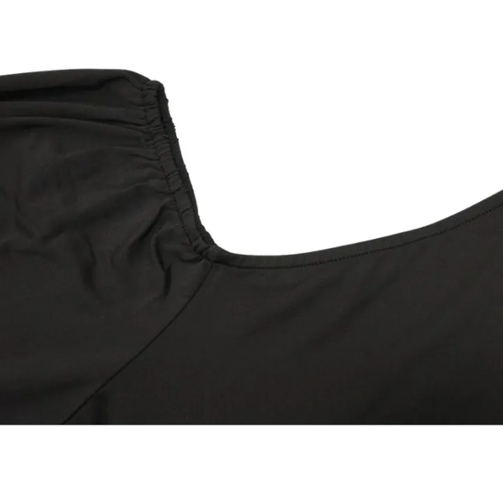 Feature: Plus size, puff sleeve, one sleeve, belt, wide-leg pant jumpsuits, floor-length, solid color, zip-up, one shoulder.