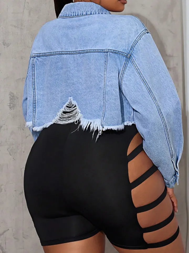 Be the first to review “Plus Size Ripped Cropped Denim Jacket” Cancel reply