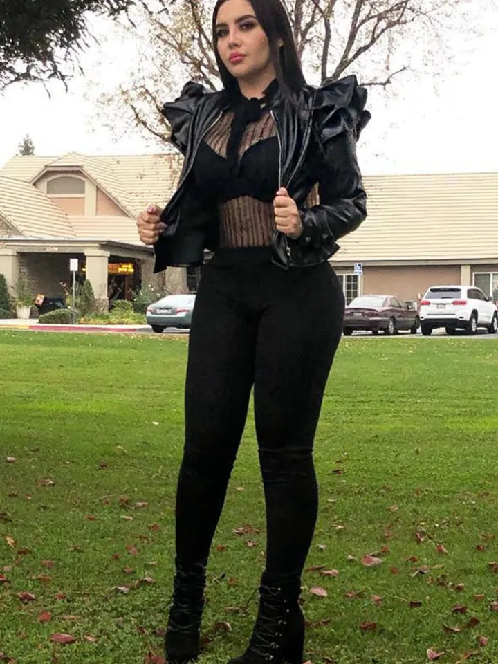 Features: PU leather, long sleeves, ruffle, zipper, solid color, short coats.