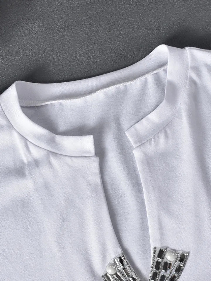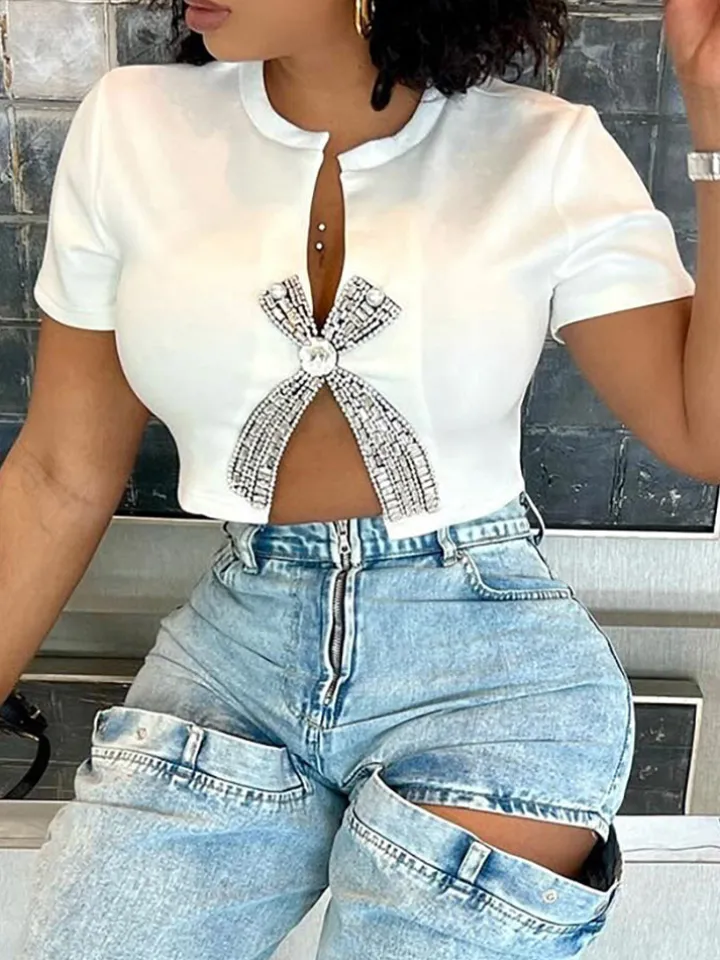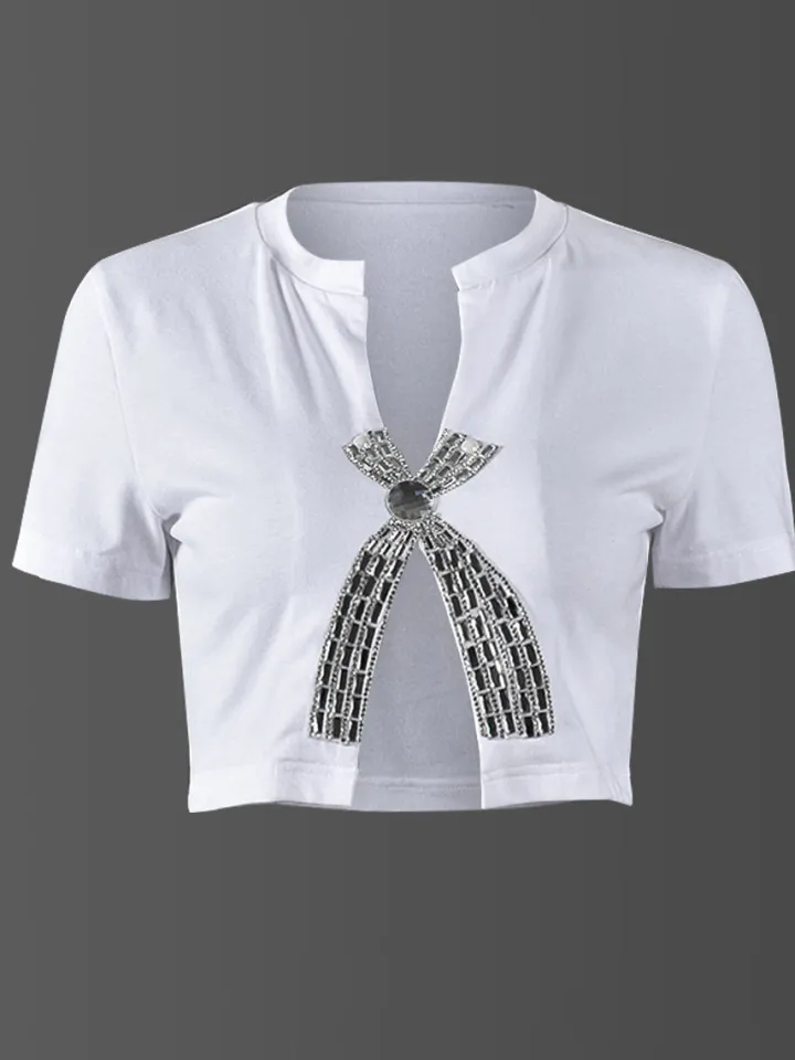 Rhinestone Split Hem Crop Top