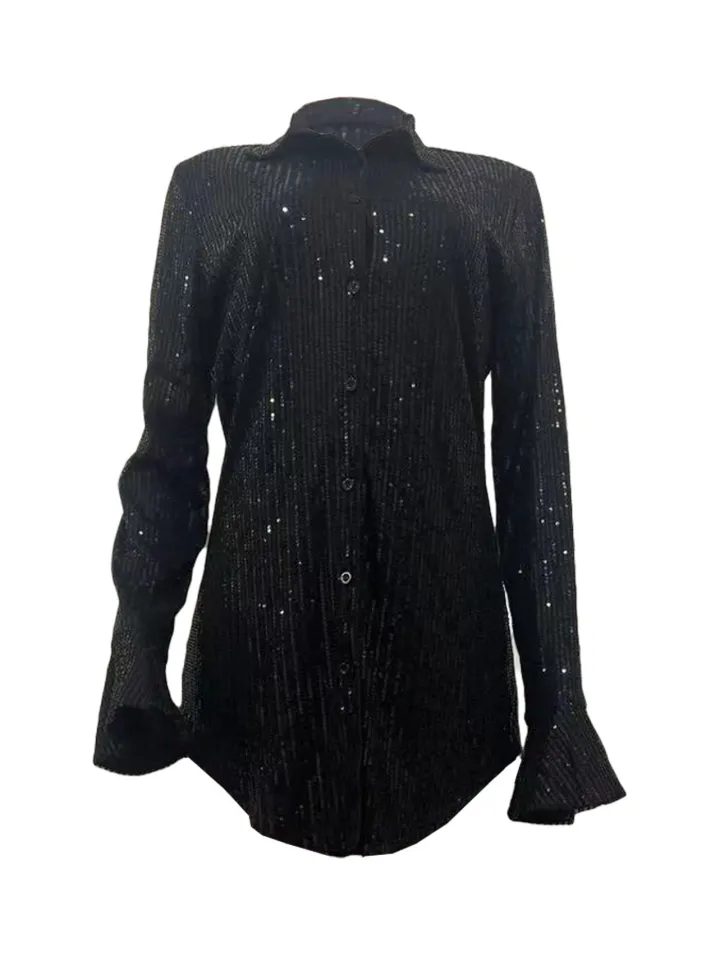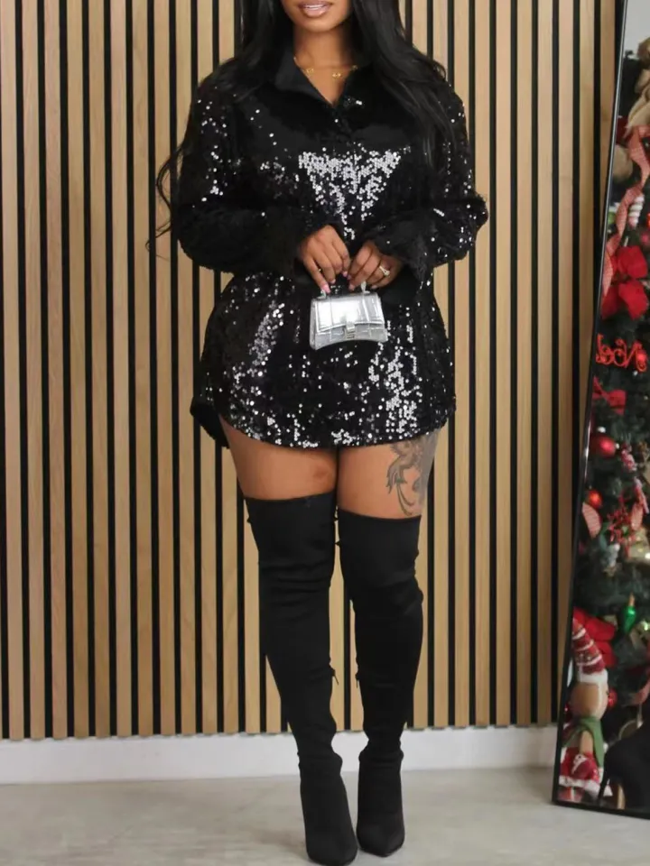 Sequin Loose Flare Sleeve Shirt Mini Dress