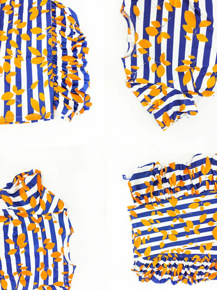 Short Sleeve Striped Print Ruffle Jumpsuit