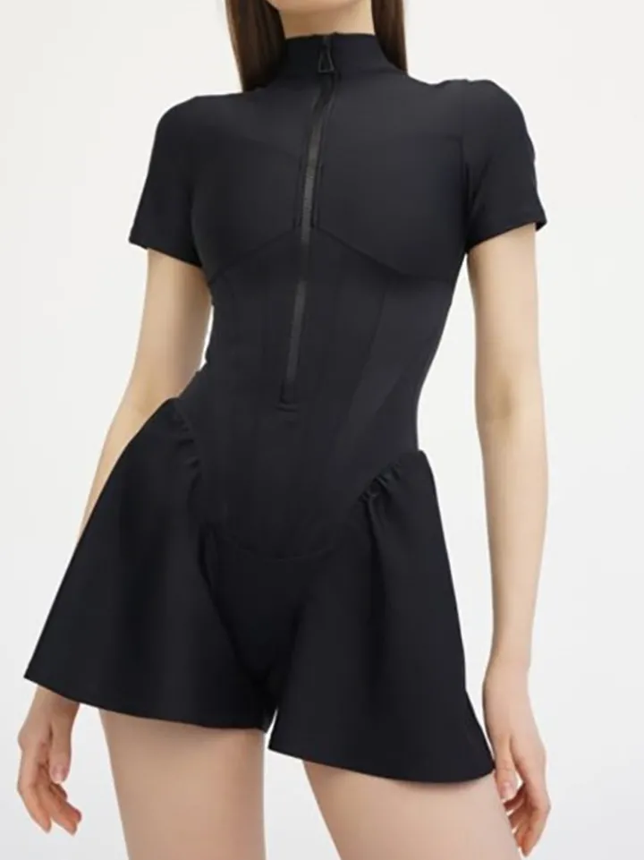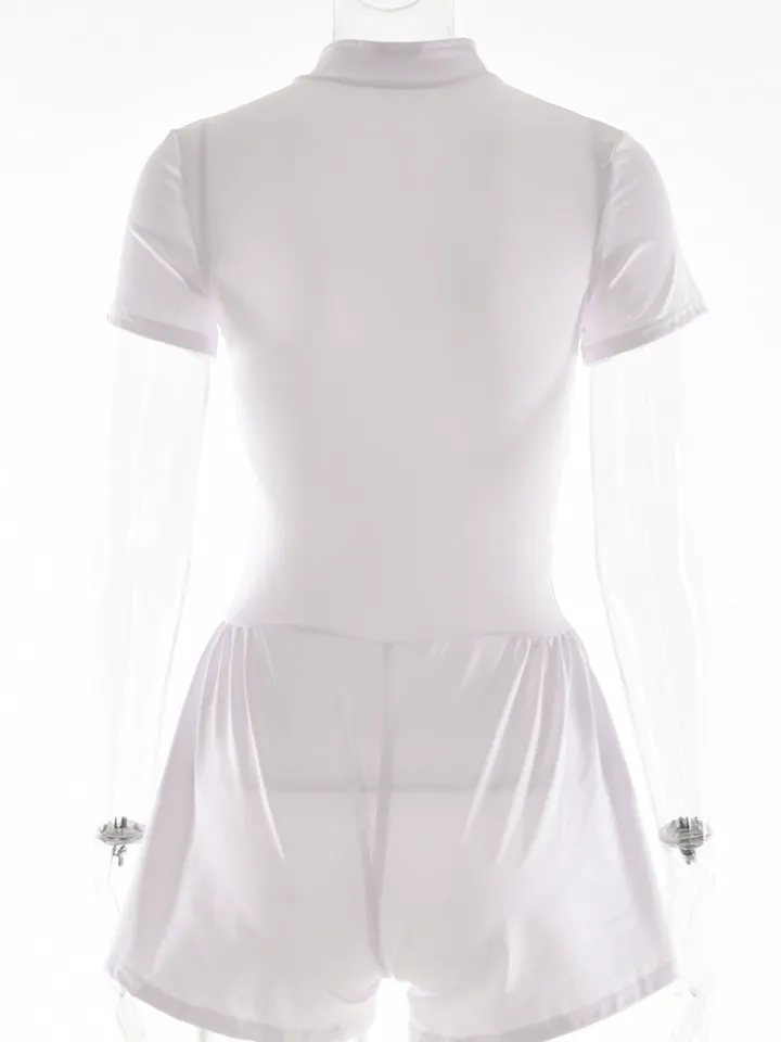 Short Sleeve Zip Front Rompers