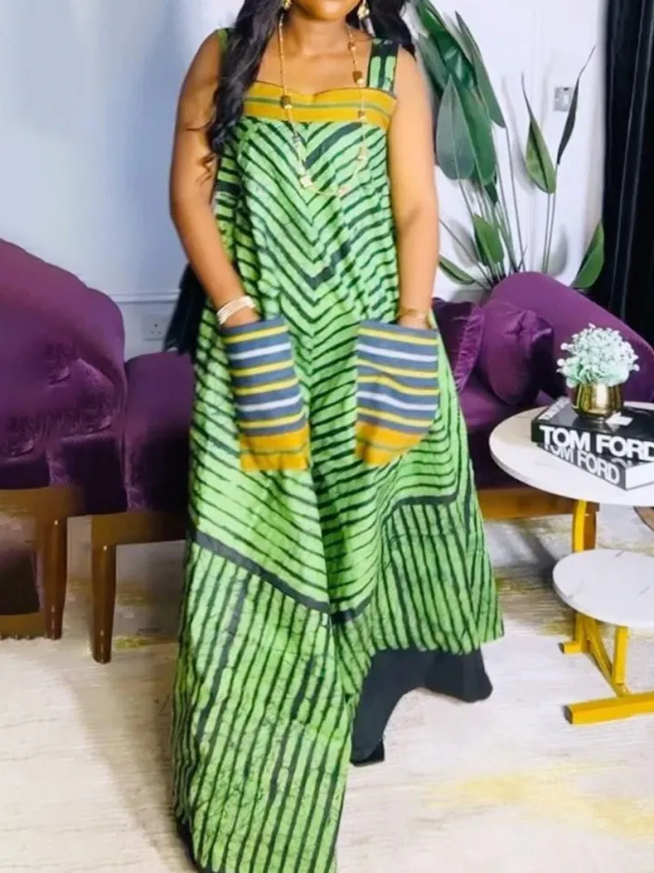 Strap Print Pockets Wide Leg Jumpsuit