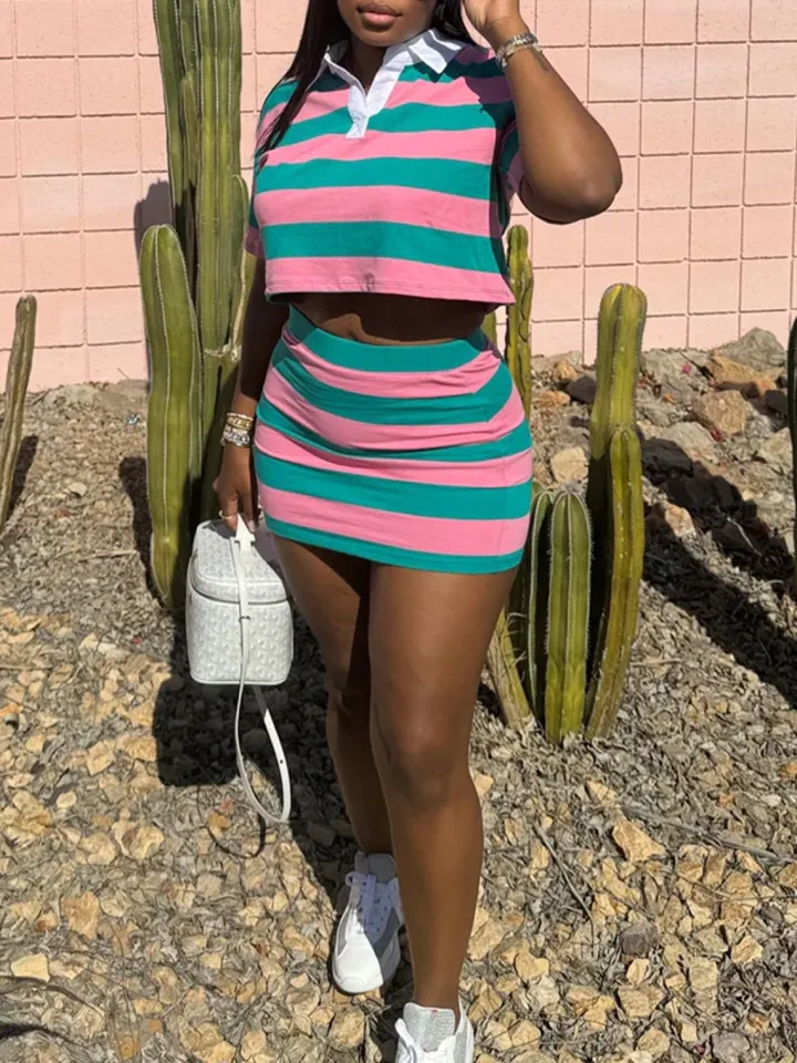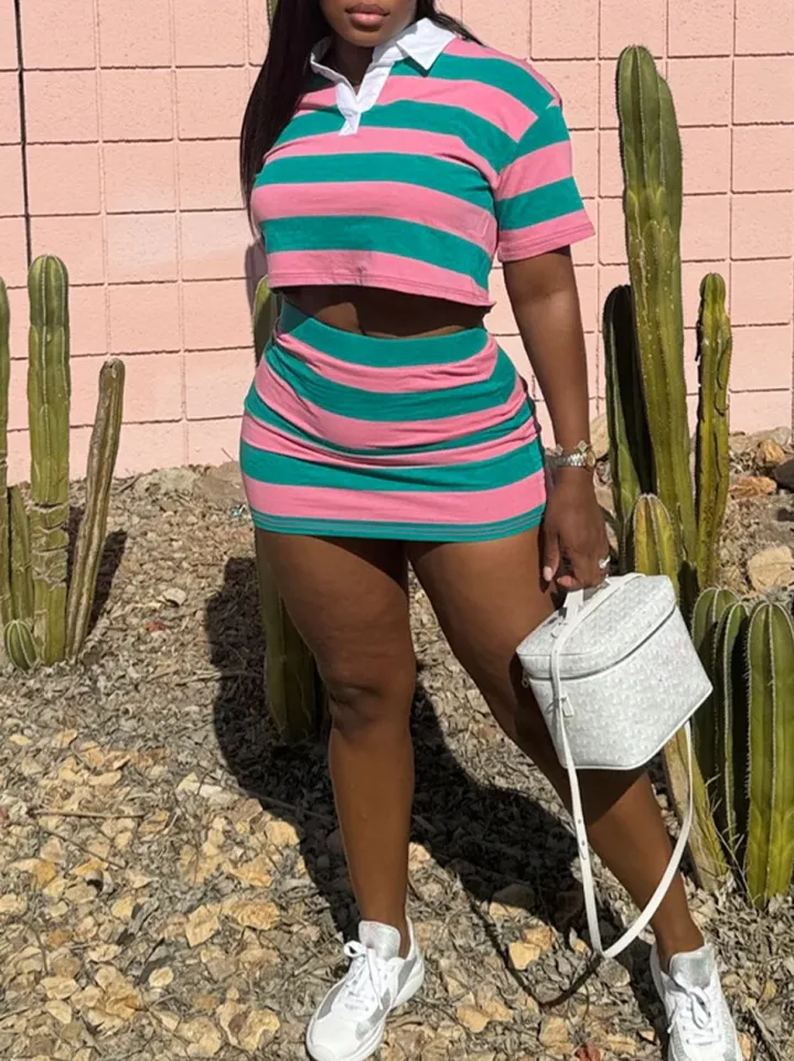 Be the first to review “Striped Contrast Crop Top Skirt Set” Cancel reply