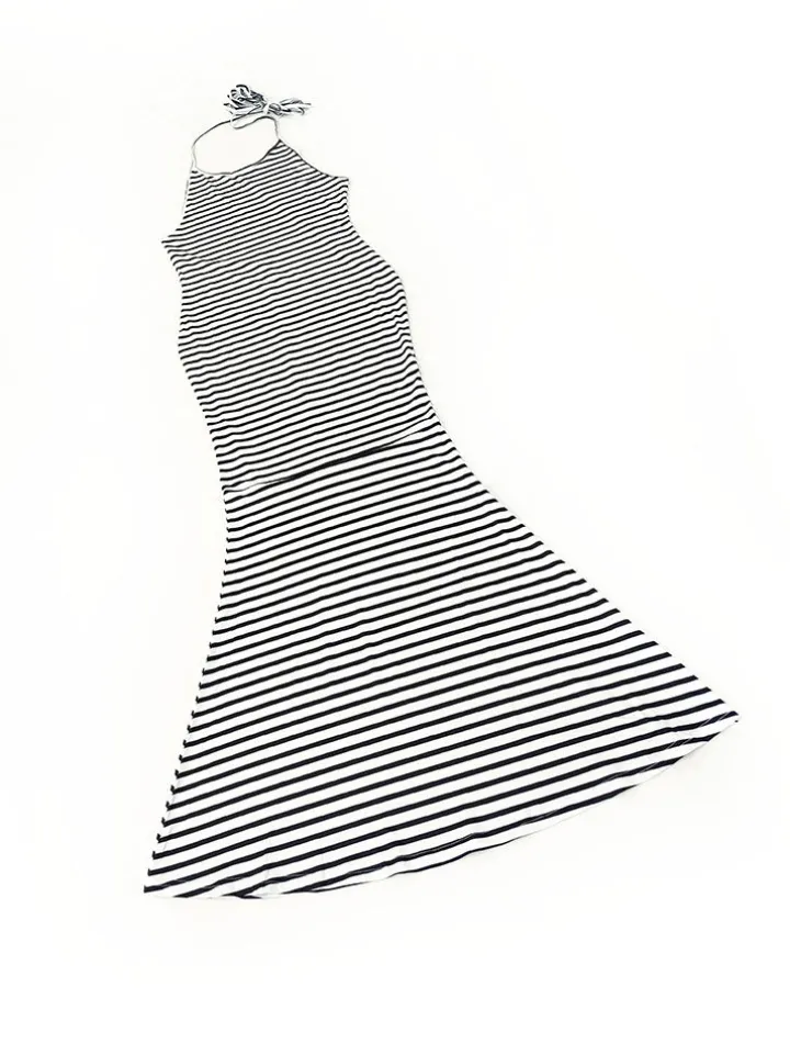 Striped Strapless Fishtail Maxi Dress