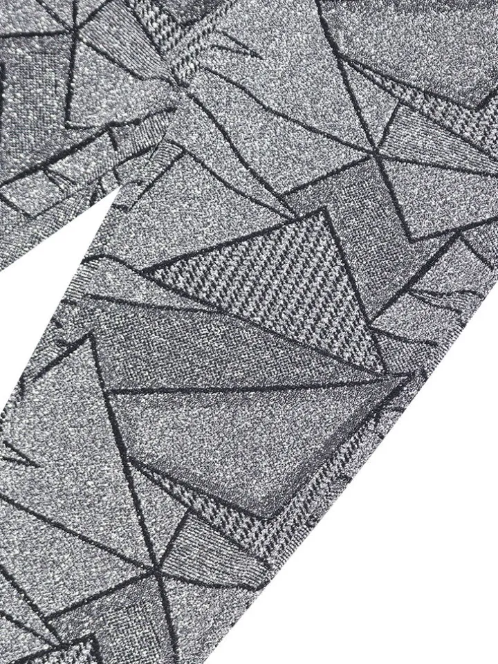 Features: Two-piece outfits, long sleeves, mock neck, crop top, geometric print, high waist, bodycon long pants.