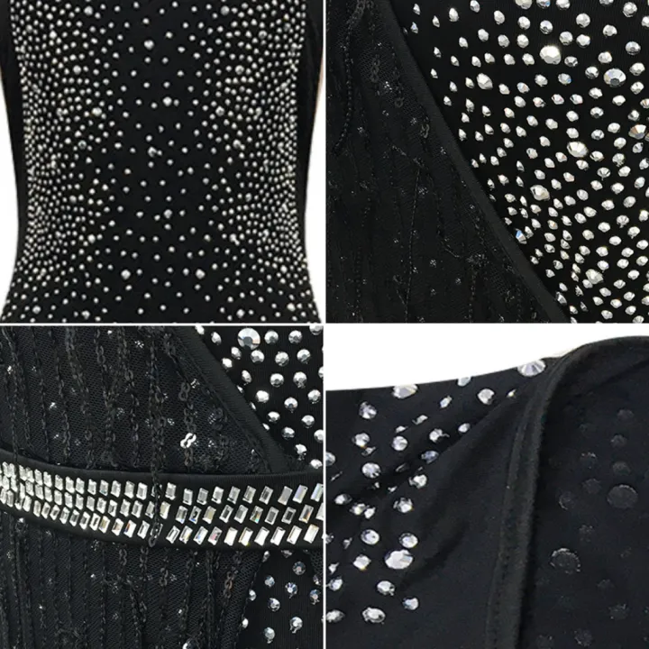 Features: Two-piece outfits, glitter, rhinestone, sleeveless, romper, mesh, one-shoulder, tassels, floor-length, side-split, solid color, maxi dress.