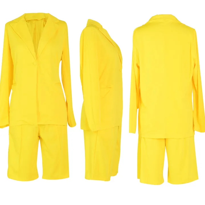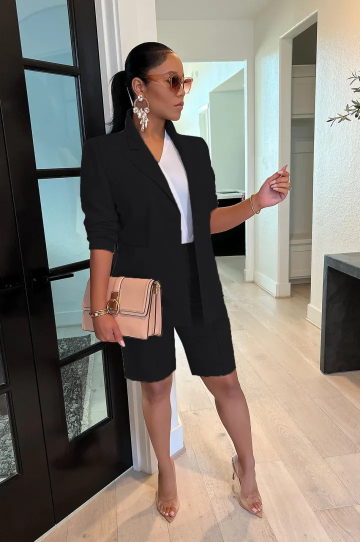 Two Piece Long Sleeve Blazer Shorts Pant Set