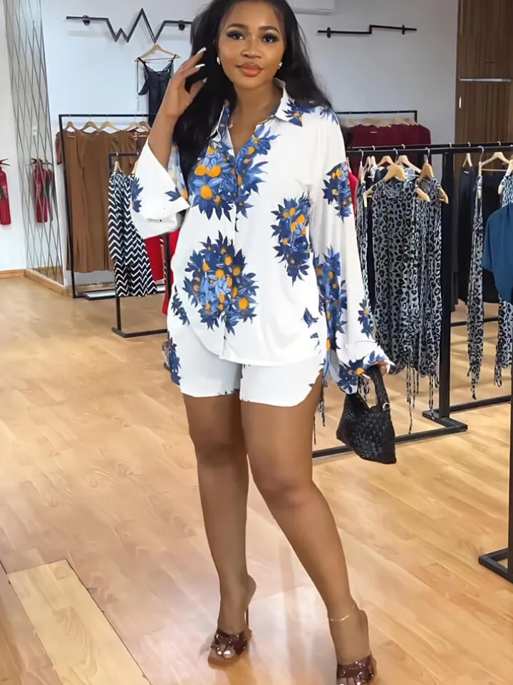 Feature: Good Stretch. Long sleeve, floral print, button down, collar, v-neck, shirt tops, bodycon, short pants, two-piece outfits, pants suit.