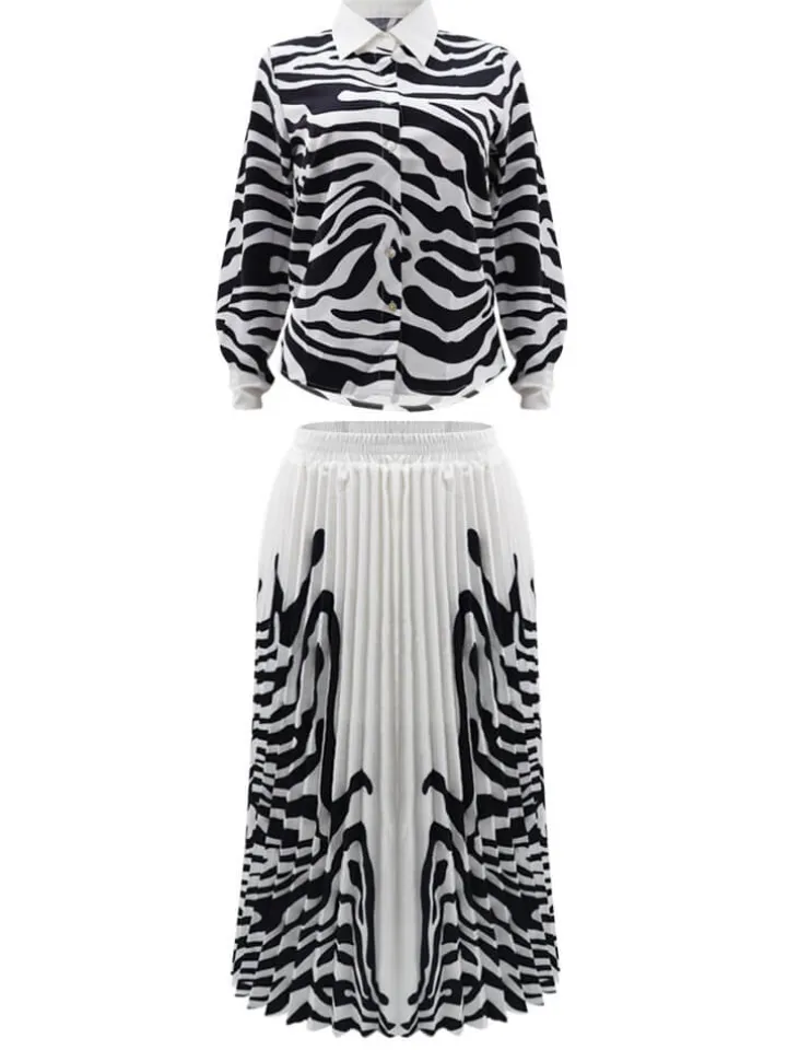 Two Piece Long Sleeve Zebra Print Skirt Suit
