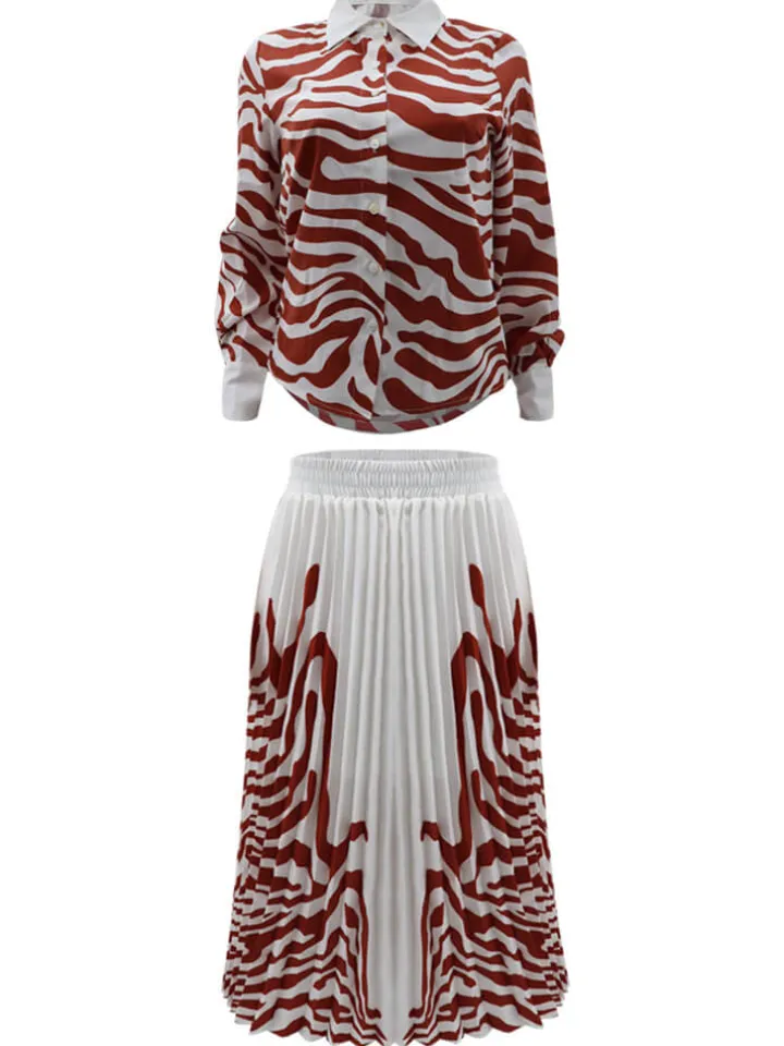 Feature: Long sleeve, zebra print, v-neck, color block, collar, bodycon, button, pleated, two-piece outfits, skirt suit.
