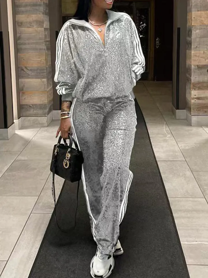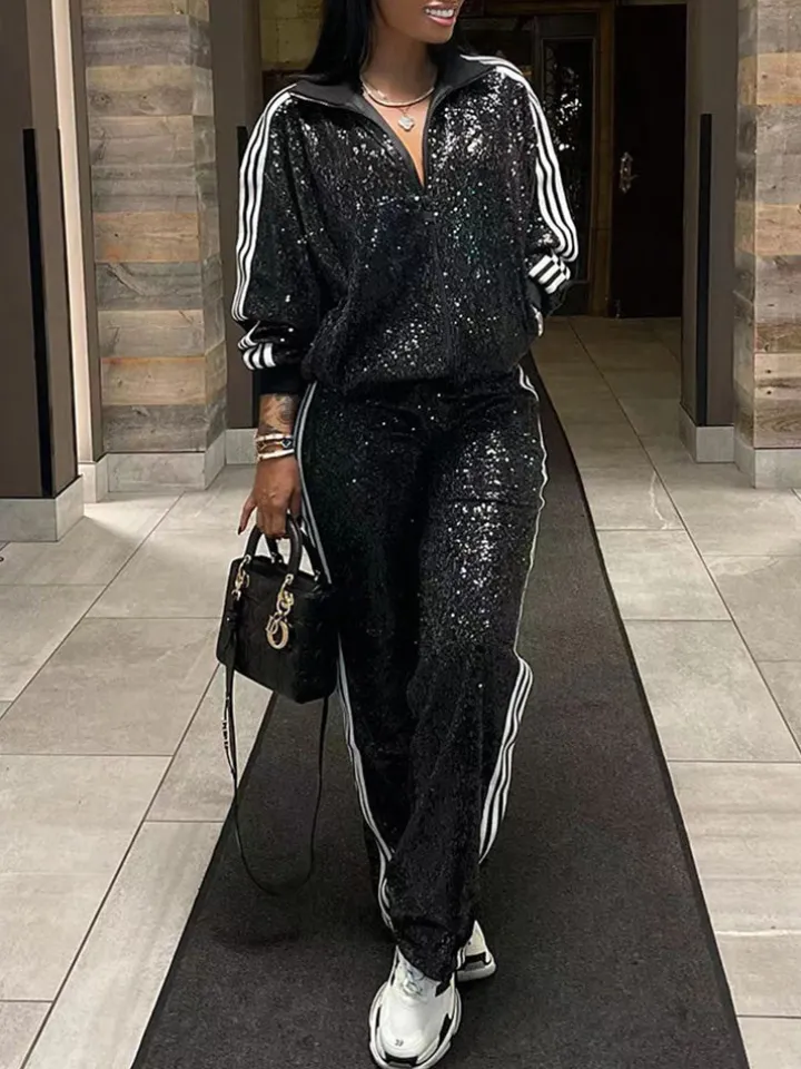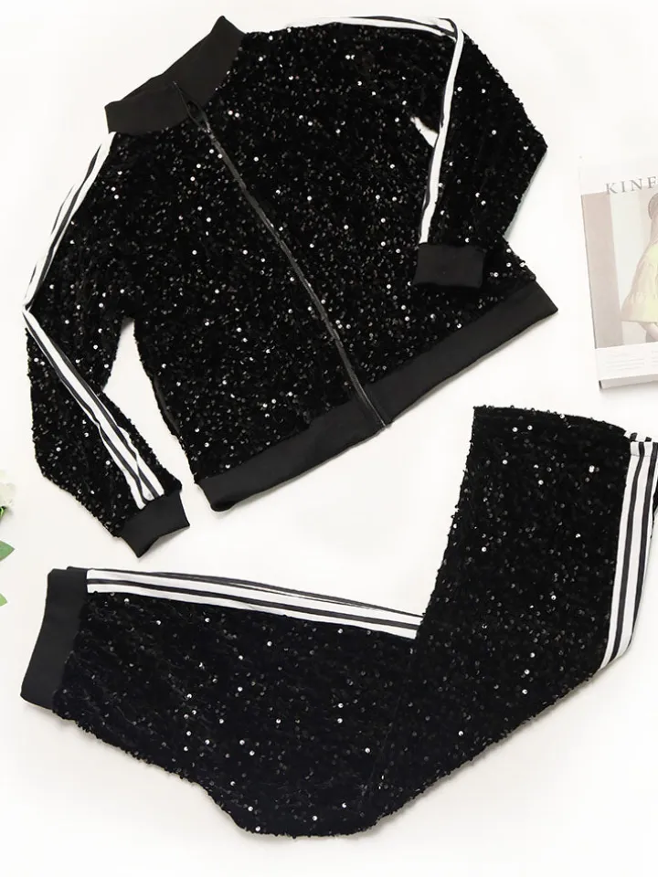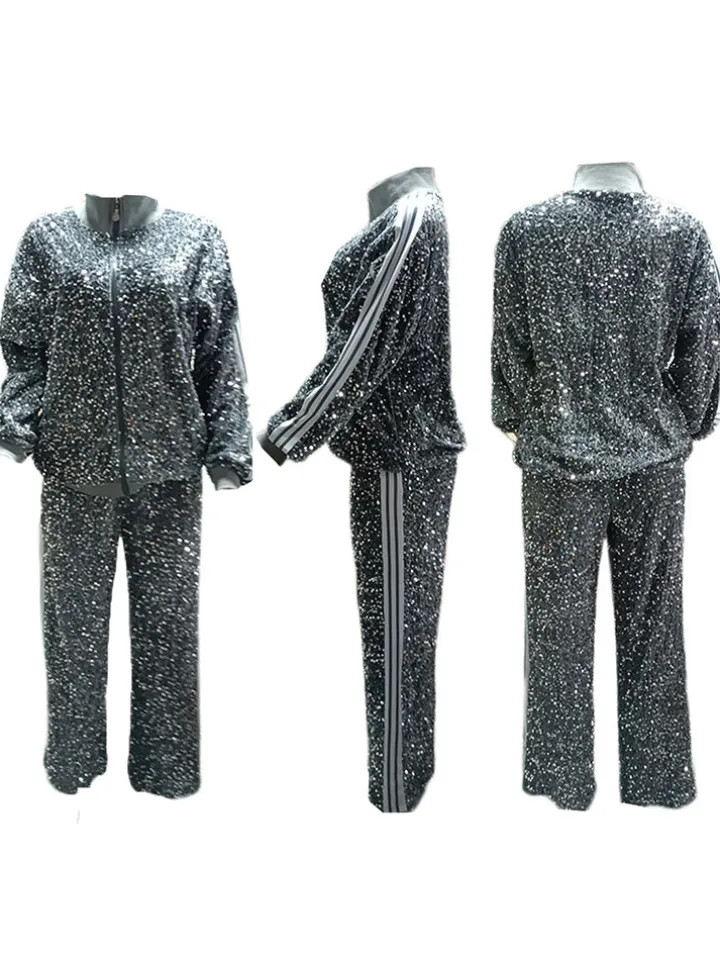 Two-Piece Sequin Jacket Pants Set Tracksuits