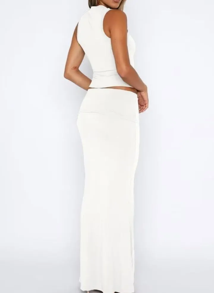 Two Piece Sleeveless Bodycon Top Ruched Skirt