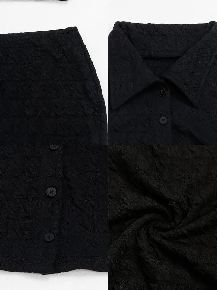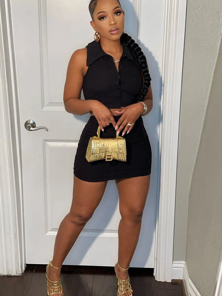 Features: Sleeveless, collar, v neck, solid color, button down, crop top, high waist, bodycon skirt suits.