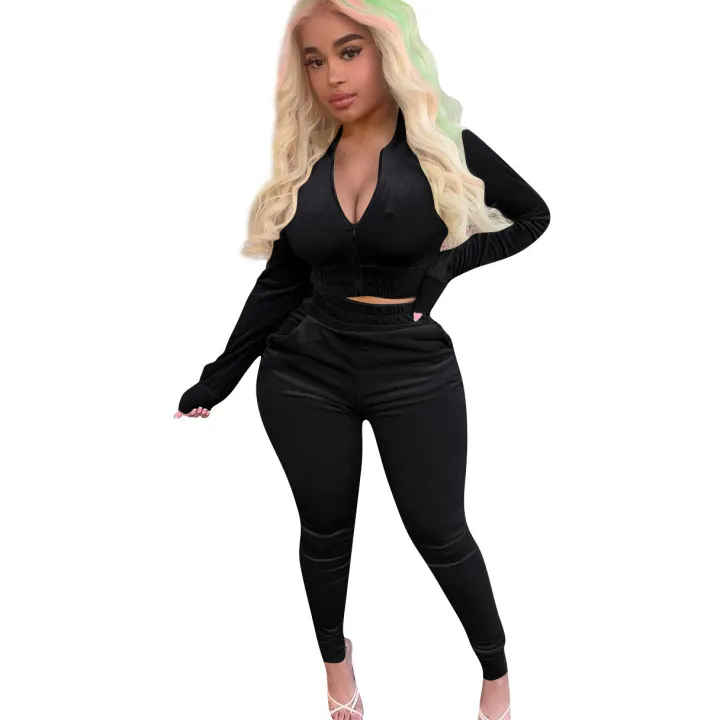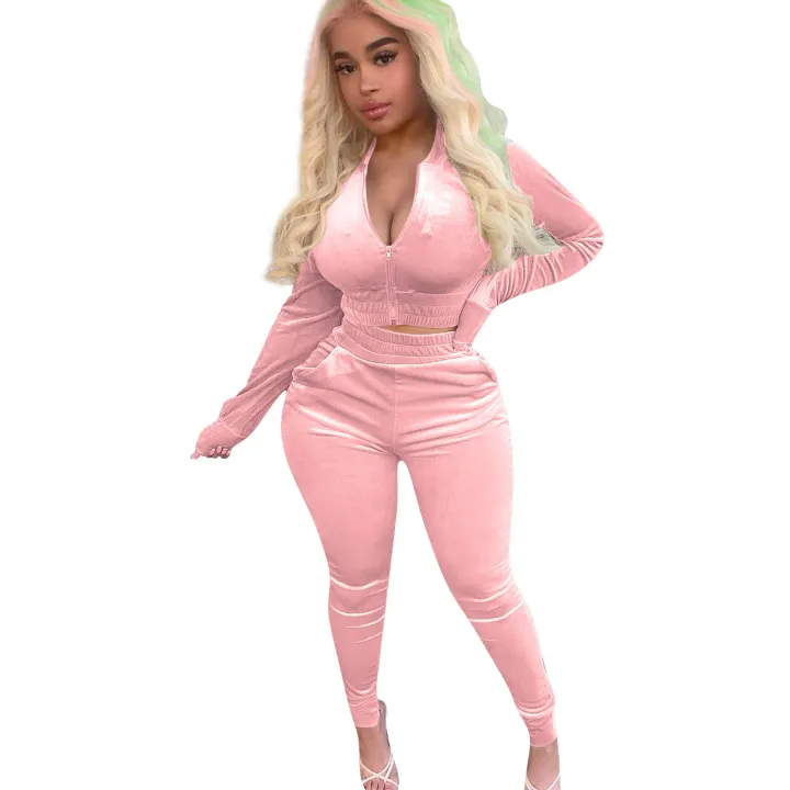 Features: This sweat suits for women set with crop zip-up hoodie jacket pair stretch bodycon sweatpant, shinning velvet fabric will make you more attractive, stylish, and chic.
