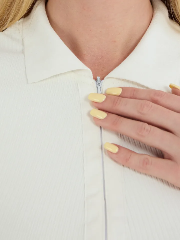V-Neck Ribbed Striped Zipper Solid Color Mini Dress